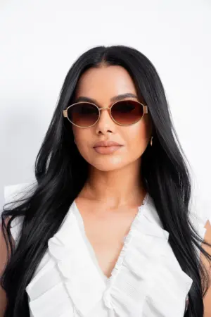 O Óculos Gabrielle combina o contraste perfeito entre preto e dourado, criando um visual sofisticado e marcante. A armação metálica traz leveza, resistência e um acabamento premium, enquanto as lentes com proteção UV 400 garantem segurança total contra os raios solares.