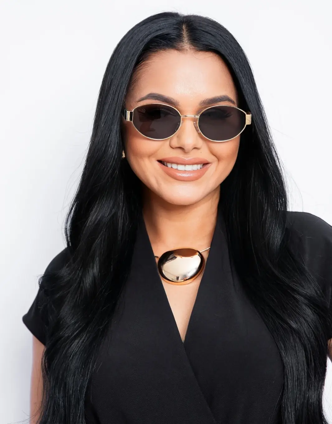Este óculos de sol foi feito para quem quer presença sem esforço. O design oval cria um visual elegante e moderno, enquanto a armação dourada traz o contraste que faz o acessório se destacar imediatamente. As lentes pretas oferecem proteção UV 400 completa, bloqueando 100% dos raios UVA e UVB — essencial para quem valoriza estilo e cuidado real com os olhos.