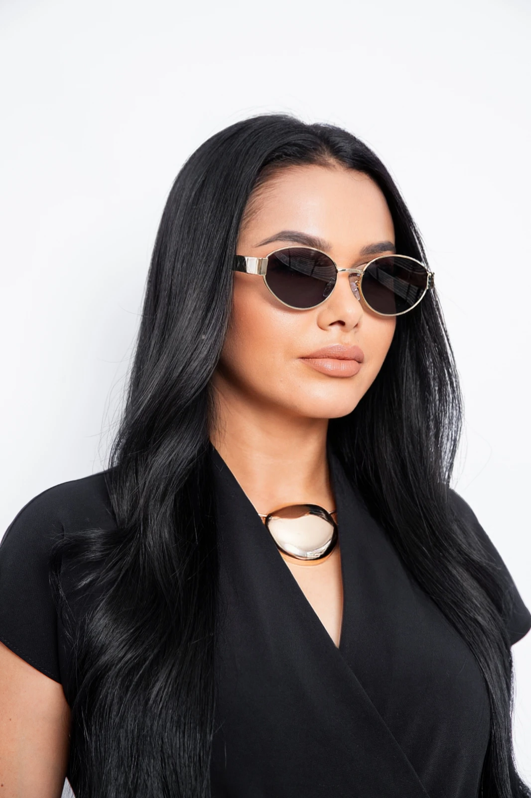 Óculos de Sol Oval – Preto com Armação Dourada | Proteção UV 400